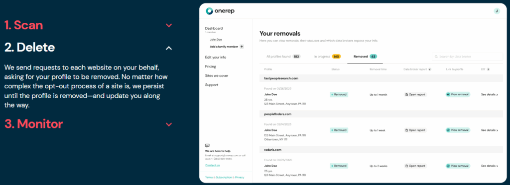 OneRep is a privacy protection tool that helps individuals and businesses safeguard their personal data by automatically removing it from public databases and online platforms. In a world where personal data is frequently exposed on people search sites, social media platforms, and even data brokers, OneRep’s service is a crucial asset for businesses that value privacy and security.