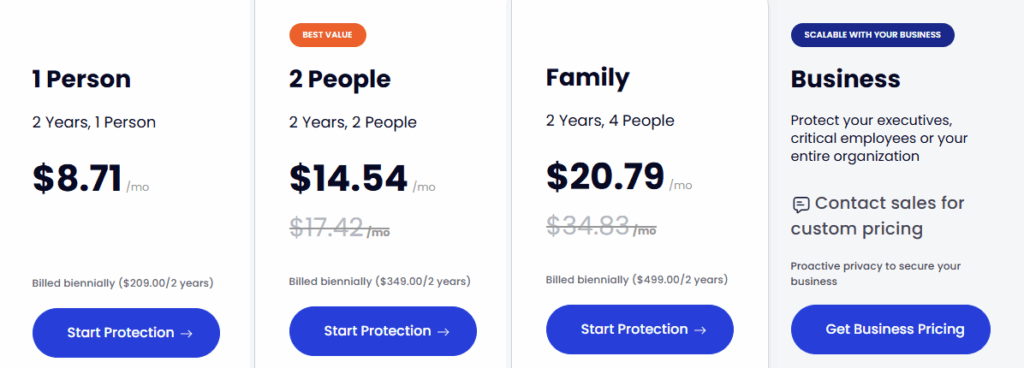 *Note: DeleteMe’s most common plan is a 2-year commitment. The monthly cost is an average.*