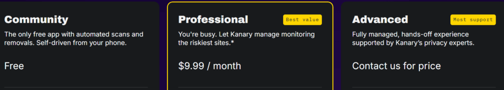 | π΅ Kanary (Pro) | $9.99/mo | $119.88/yr | “Riskiest Sites” | Automated removal & monitoring. |