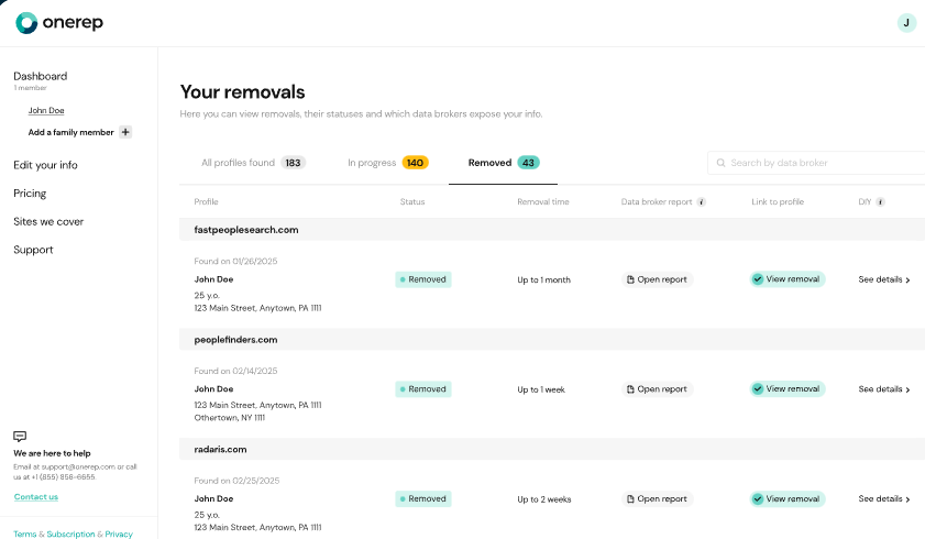 Services like OneRep exist to make this process manageable and consistent, helping individuals regain control over their digital footprint and maintain privacy long-term. β