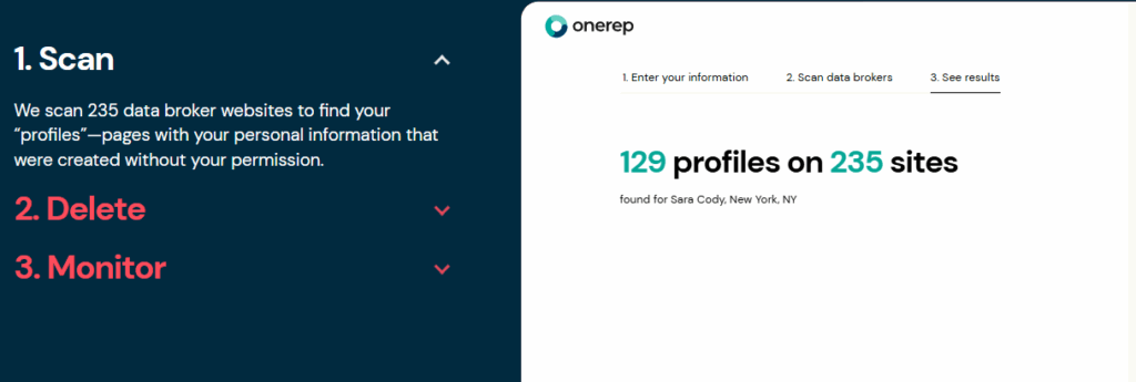 OneRep continuously scans a large network of data broker and people-search websites where personal information is commonly published. These include sites that list: